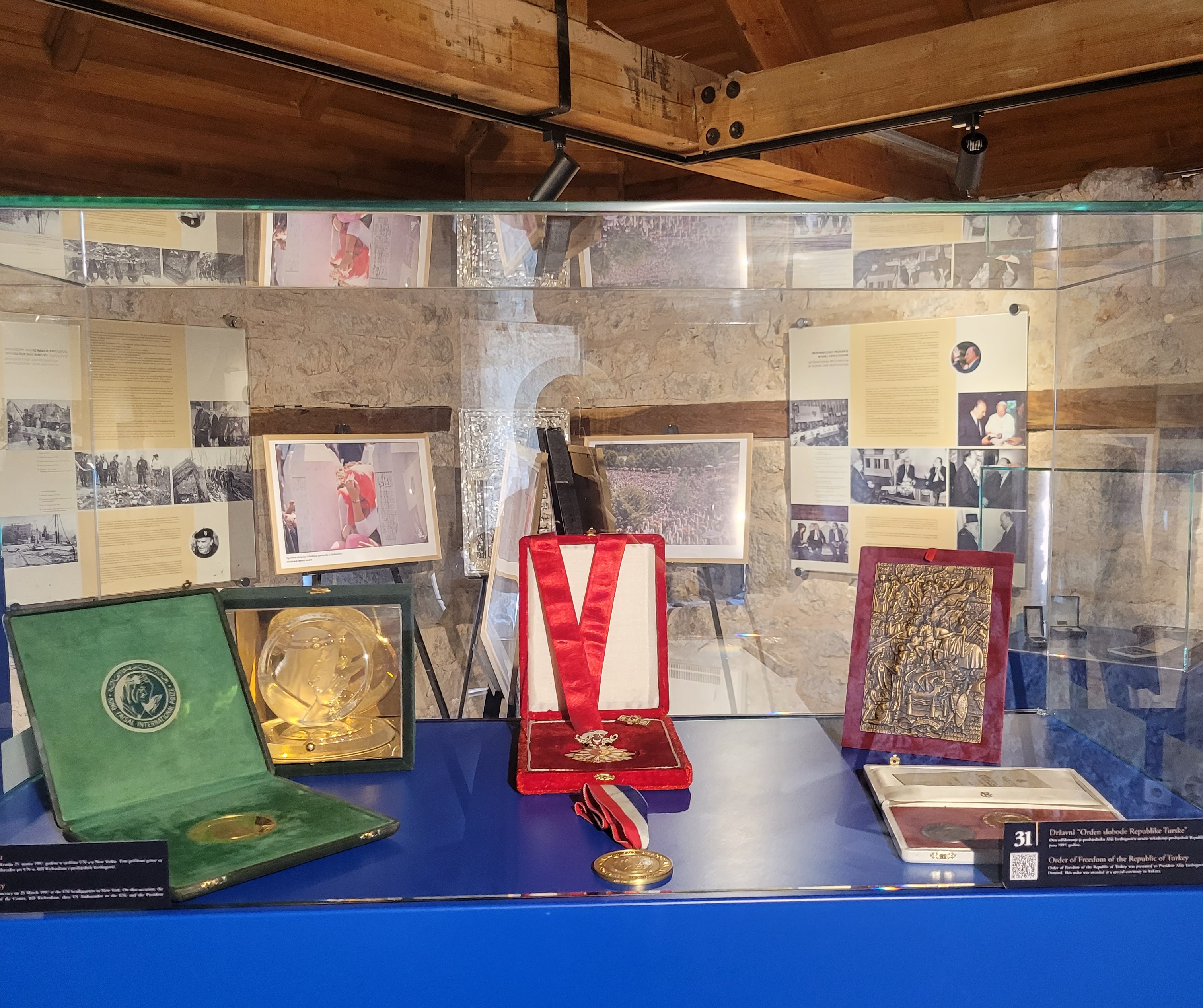 Ayrıca müzede, Filistin lideri Yaser Arafat’ın Aliya İzzetbegoviç’e hediye ettiği “Ayet'el Kürsi” levhası da sergileniyor. Bu anlamlı eser, müzenin uluslararası bağlamda taşıdığı değeri pekiştiriyor.