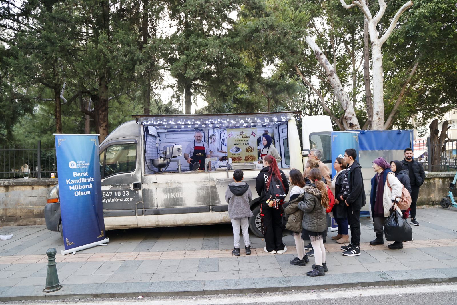 Antalya Büyükşehir Belediyesi Sosyal Hizmetler Dairesi Başkanlığı, Berat Kandili vesilesiyle manevi dayanışmayı güçlendirmek amacıyla 19 ilçede belirlenen cami önlerine kurulan mobil ikram noktalarında vatandaşlara sıcak lokma ve kandil simidi ikramında bulundu.