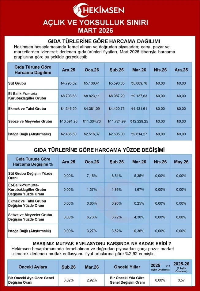 Hekimsen Mart 2026 Açlık ve Yoksulluk Sınırı Raporu